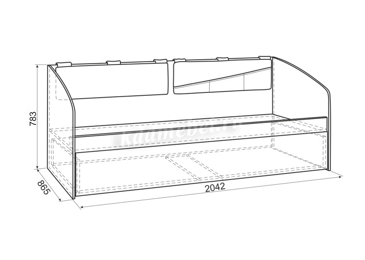 Состоит из: спального места и выдвижного ящика. Софу "Энерджи" можно использовать, как софу с ящиком, а можно как 2х уровневую кровать.