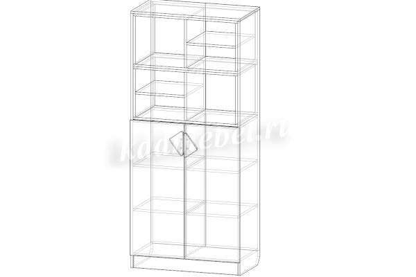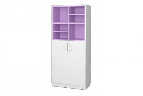 Вместительный стеллаж Рокси для книг и игрушек, часть закрыта дверками , открытые полки выполнены в ярком современном цвете ЛДСП.