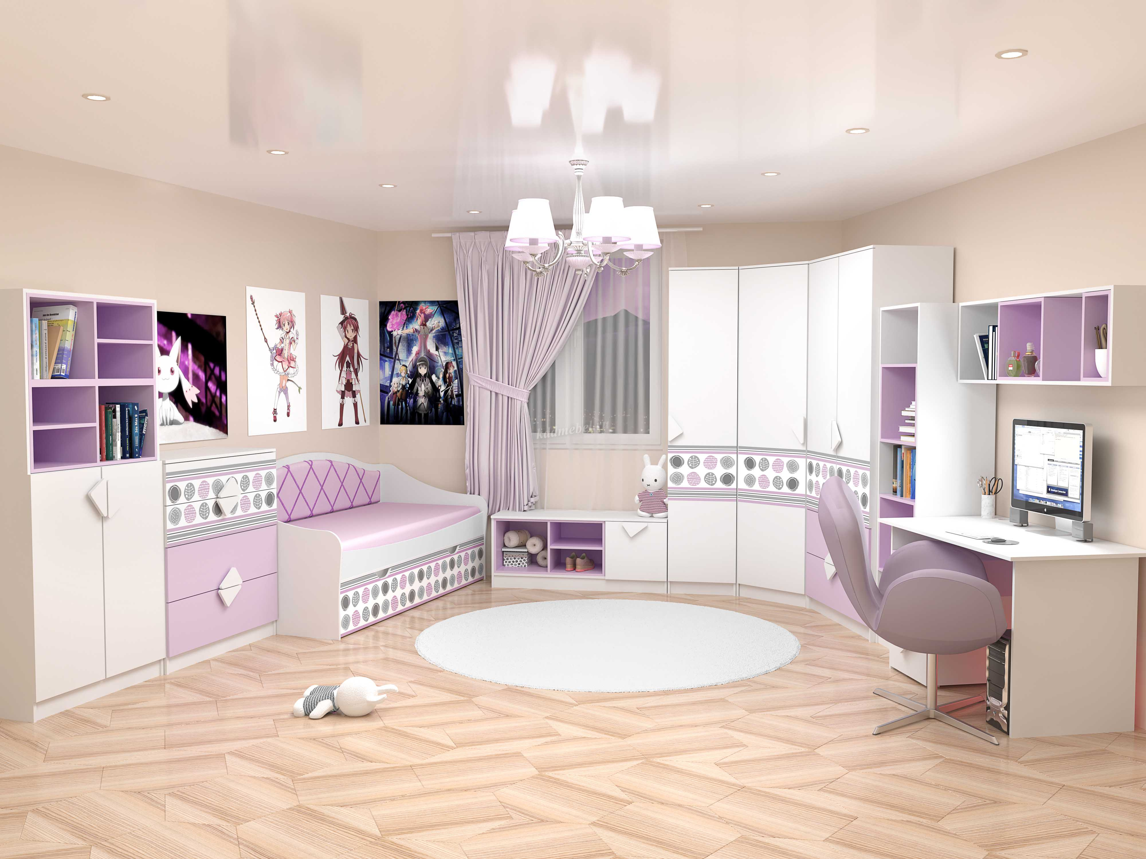 Материал: ЛДСП Белое/Лаванда