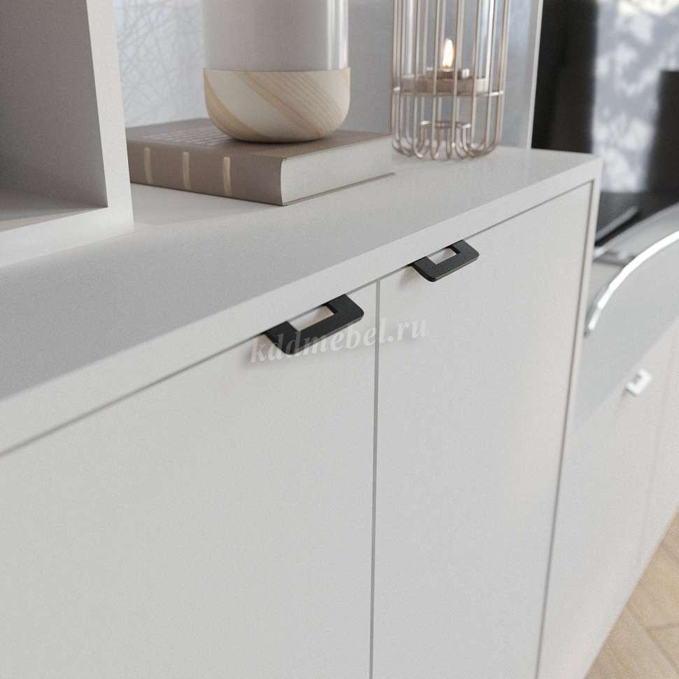 Фурнитура: петли с доводчиками, торцевые ручки черного цвета.