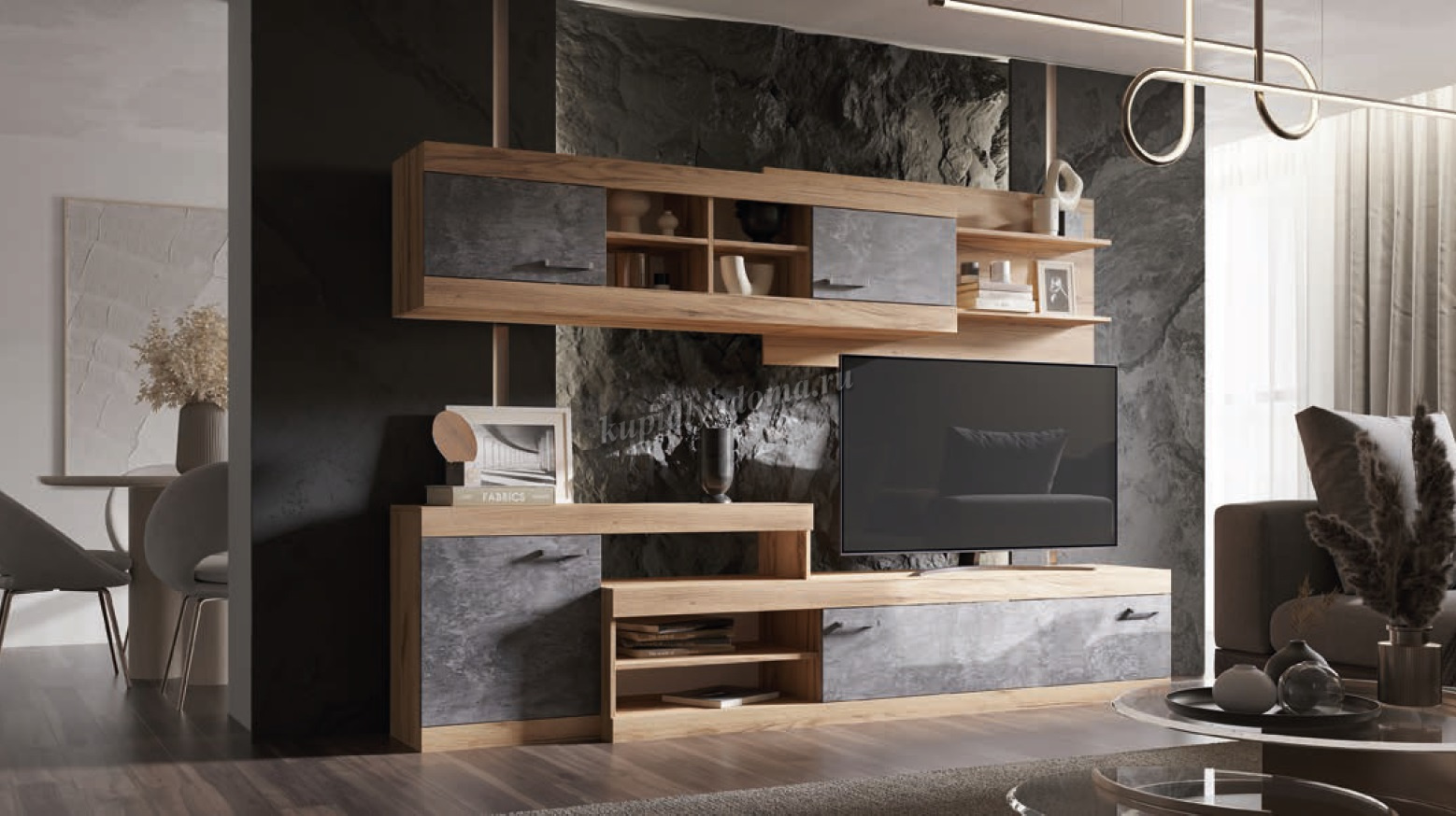 Описание Гостиная Бьерк (Дуб вотан/Цемент темный)
