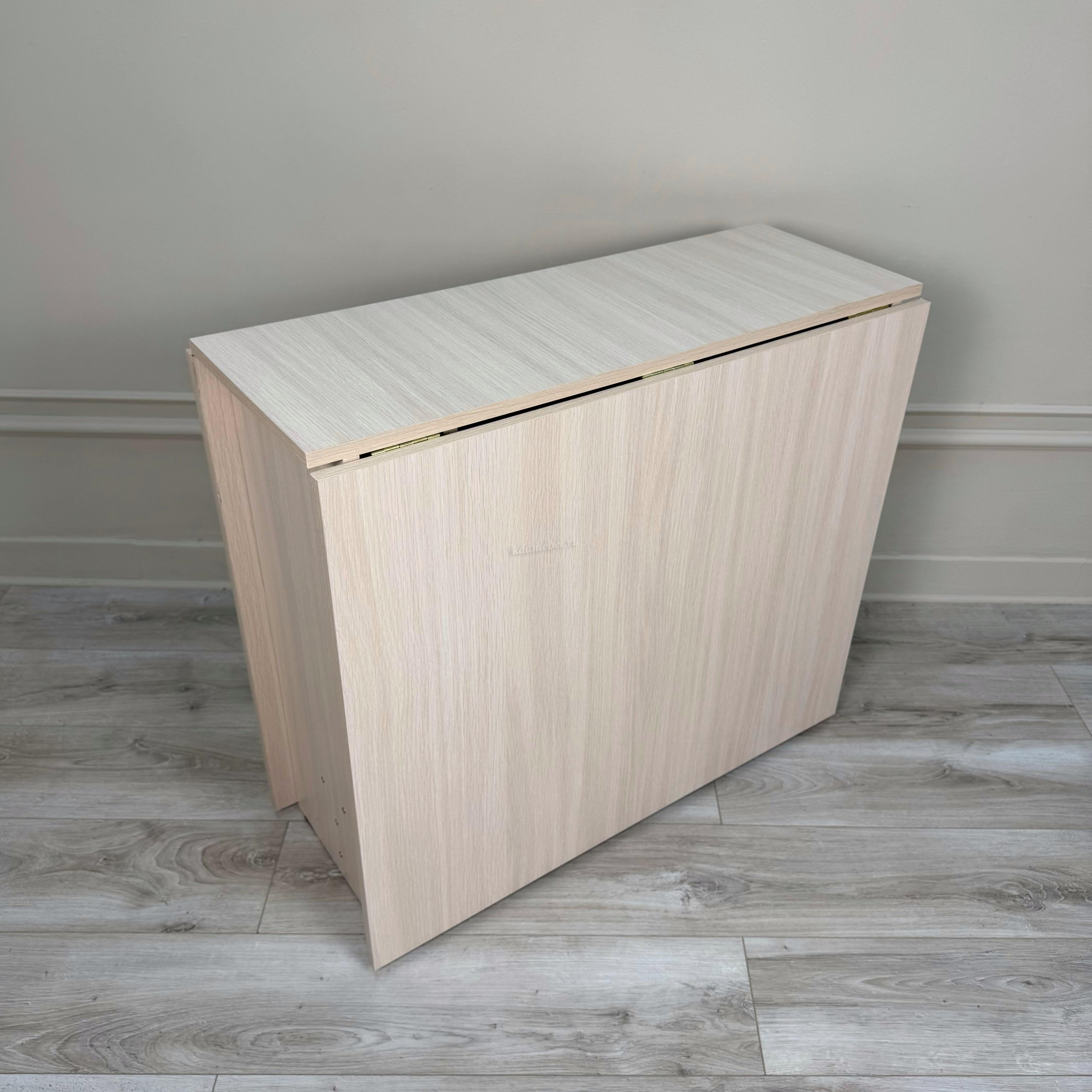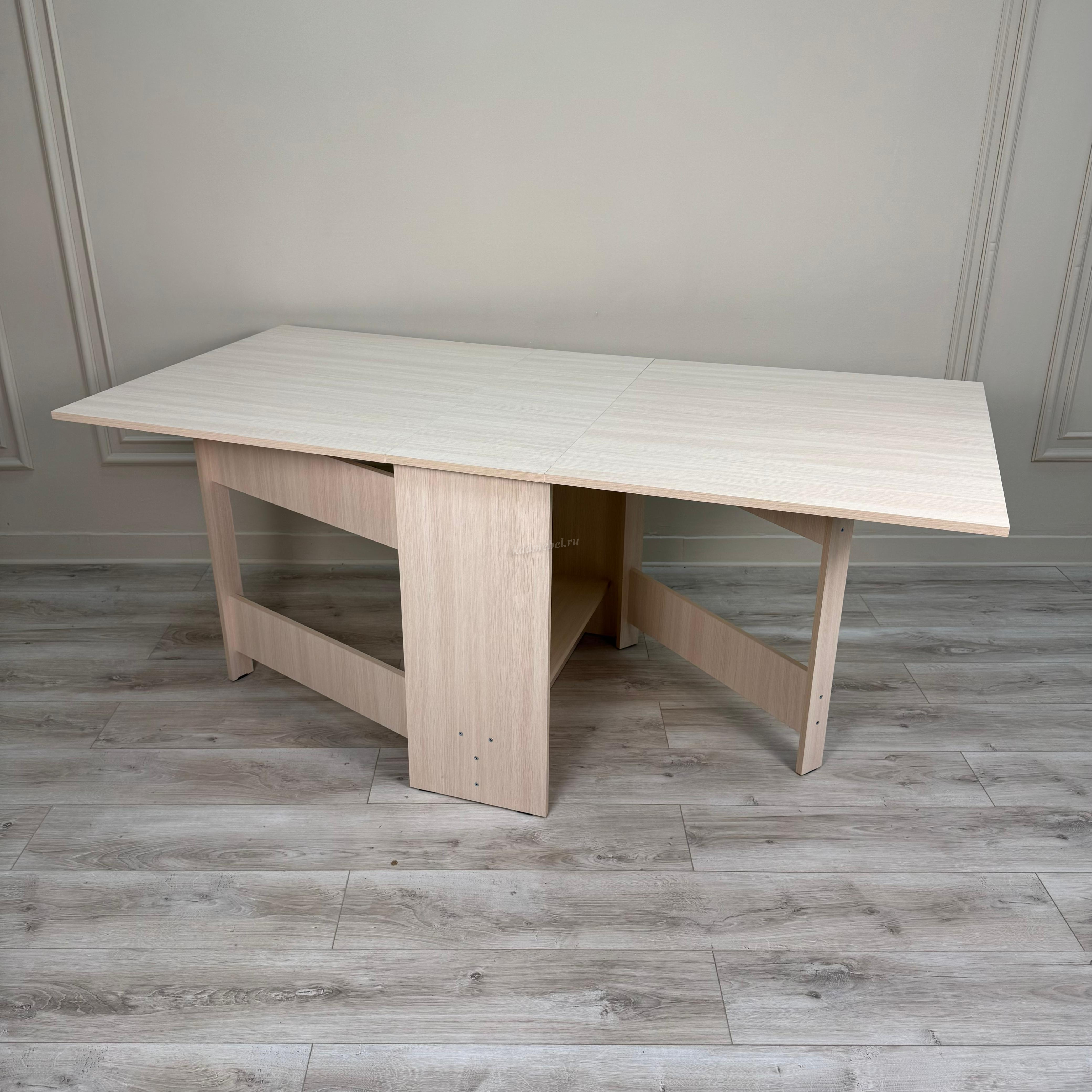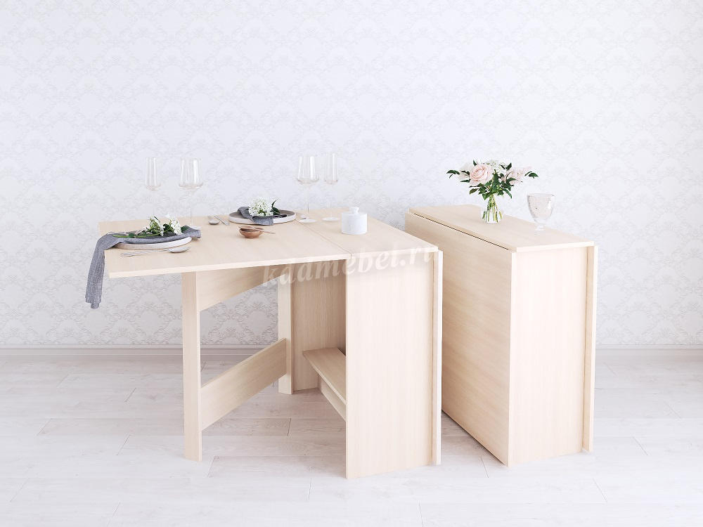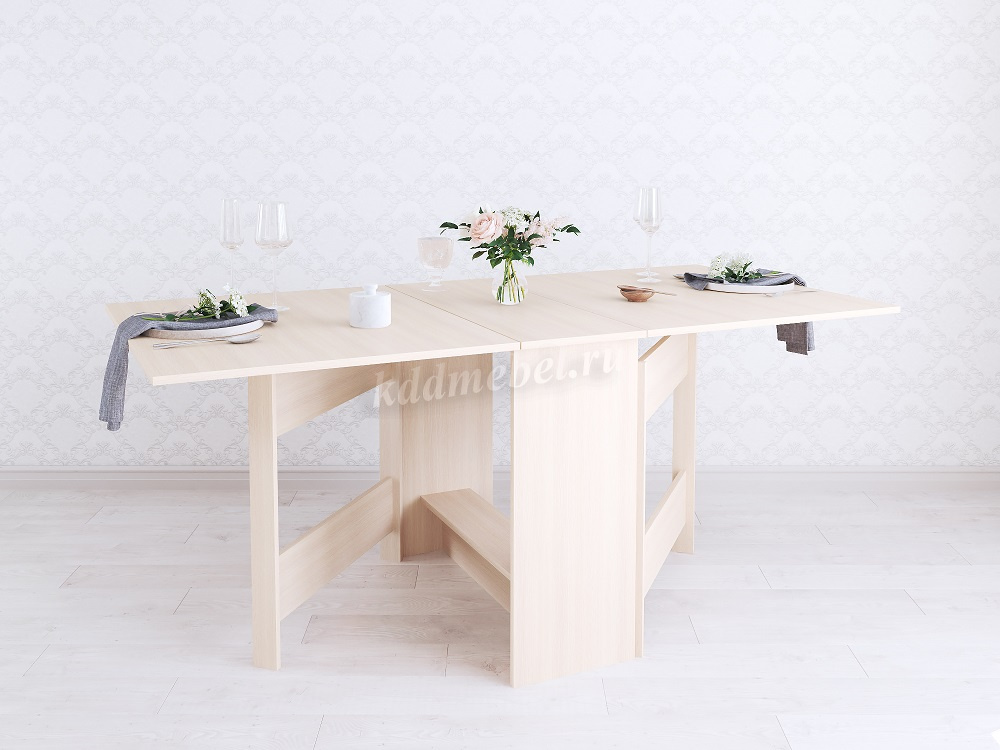 Стол имеет 3 положения: полностью сложенный, разложенный наполовину или полностью разложенный.