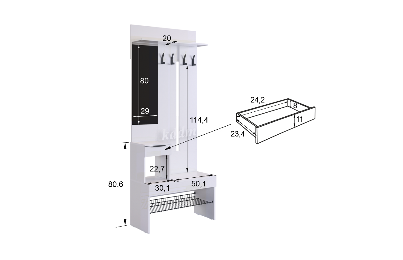 Прихожая К5 Баско (Белое дерево) наличие товара: