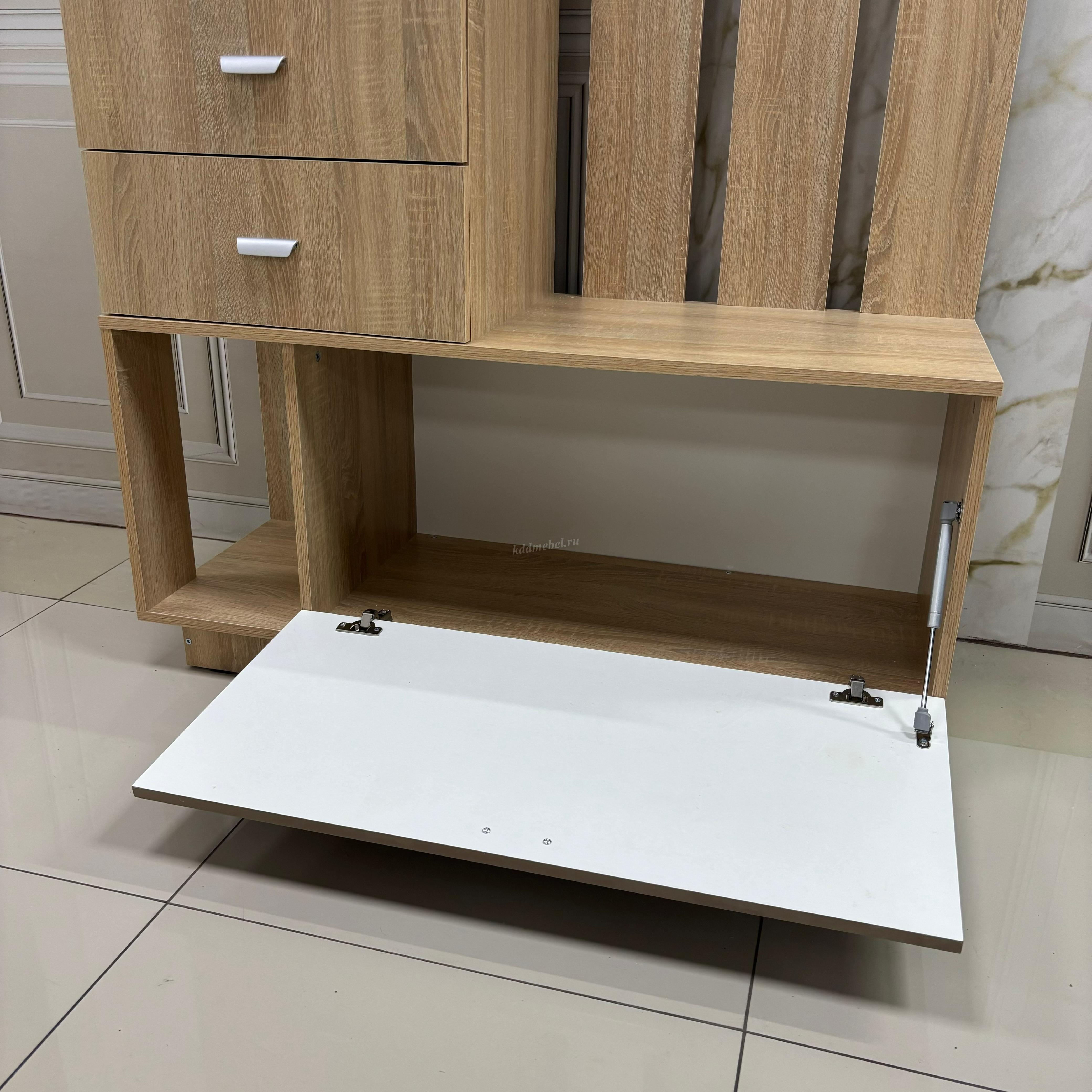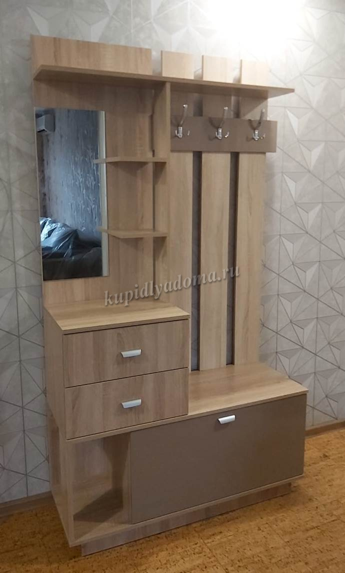 Эффективное решение для небольшой прихожей — это «Вега ». Несмотря на компактные размеры, мебель включает в себя всё необходимое для аккуратного хранения одежды и повседневных мелочей. Прихожая оснащена вместительным отсеком для обуви, ящиками, а также полками для аккуратного хранения повседневных мелочей и головных уборов.