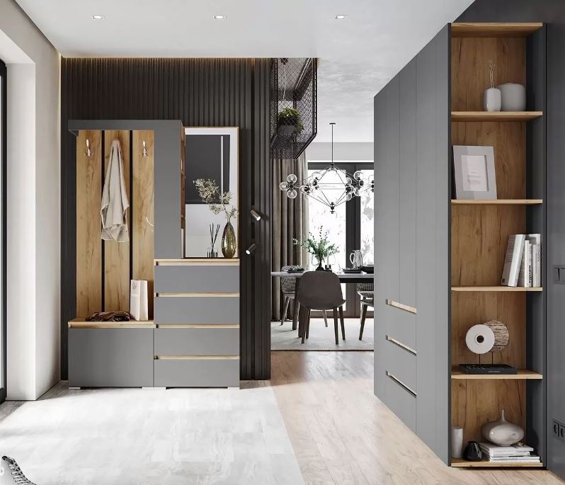 Модульная прихожая Хелен (Крафт золотой/Графит серый)