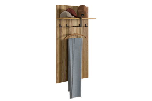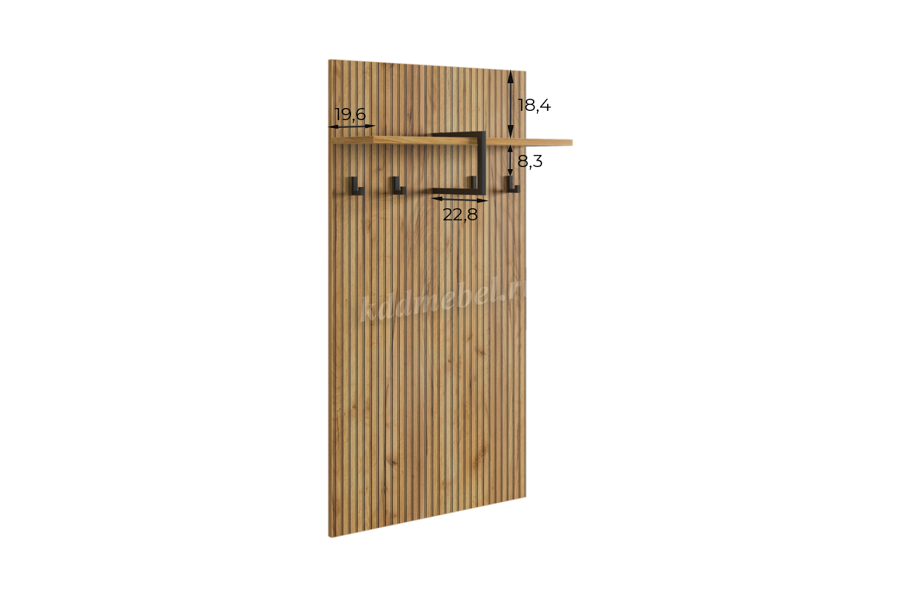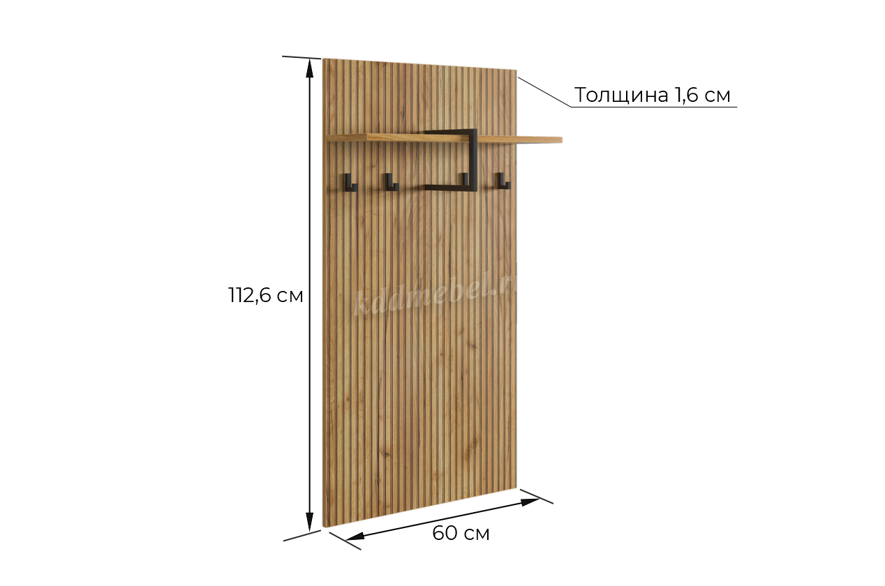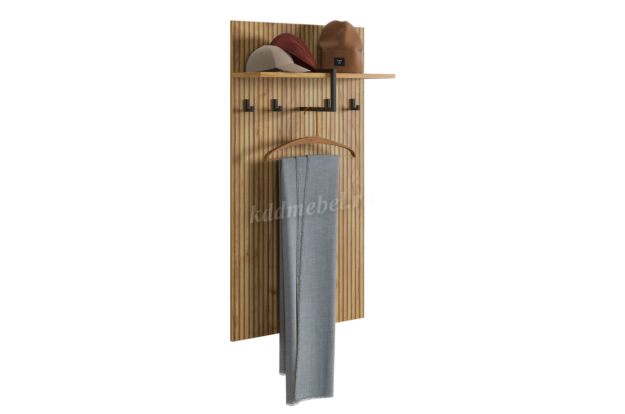 Вешалка 2 "Бодрум" – стильное и функциональное решение для организации пространства в вашем доме. Эта вешалка сочетает в себе элегантный дизайн и практичность, идеально подходя для прихожей, спальни или гостиной. Принт, имитирующий вертикальную фрезеровку придает вешалке уникальный и современный вид, добавляя текстуру и глубину. Крючки предоставляют удобное место для хранения верхней одежды, сумок или аксессуаров. Держатель для плечиков позволяет организовать хранение одежды, сохраняя ее в идеальном состоянии. Полка служит дополнительным пространством для хранения головных уборов.