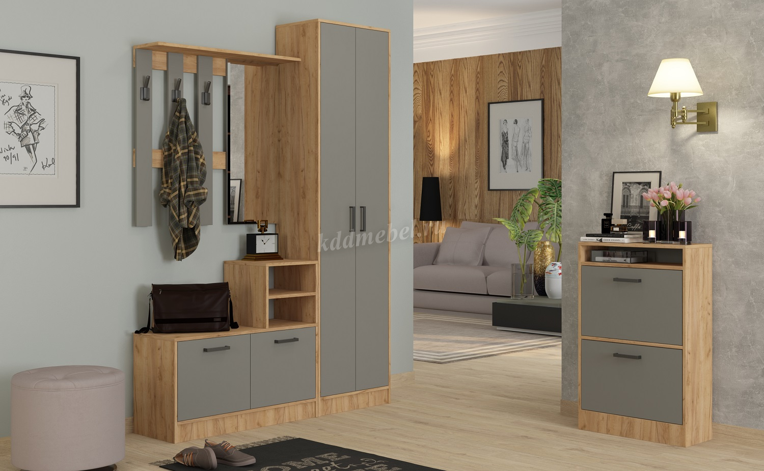Вешалка с зеркалом Энтер (Дуб золотой/Серый)
