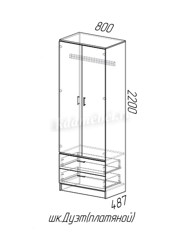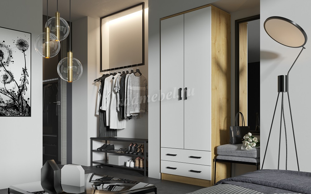 Описание Шкаф Дуэт платяной (Дуб Вотан/Белый)