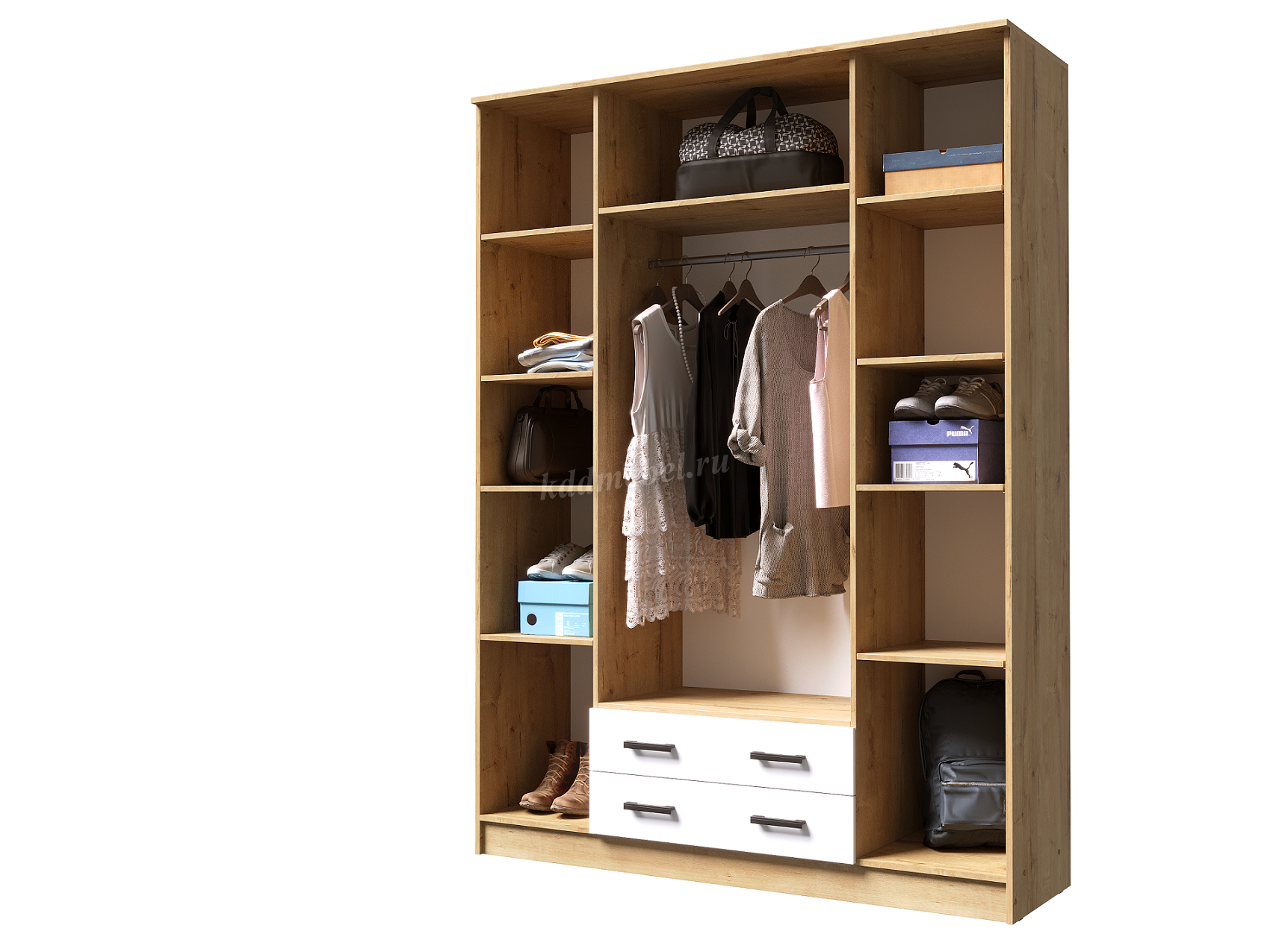 за центральными дверцами, помимо верхней полки, имеется штанга для одежды;
