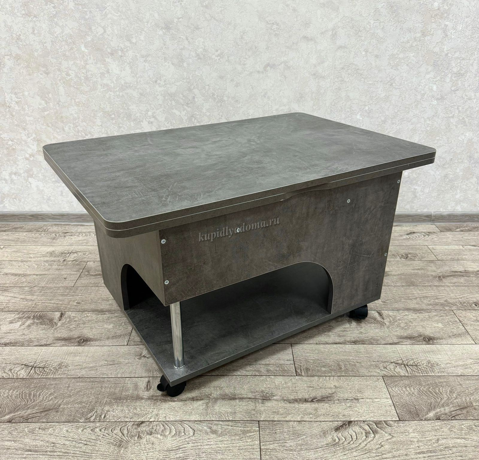 Журнальный стол трансформер «Стэп» это умная экономия пространства. Простой в использовании механизм трансформации позволит Вам увеличить поверхность стола в два раза по площади и высоте и превратить журнальный стол в обеденный за считанные секунды.